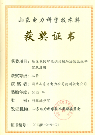 日前,山东省电力科学技术奖励委员会对2013年在山东电力行业做出突出贡献的单位和个人进行了表彰,由我公司和德州供电公司联合研发的科研项目“地区电网智能调控辅助决策系统研究及应用”荣获山东电力科学...